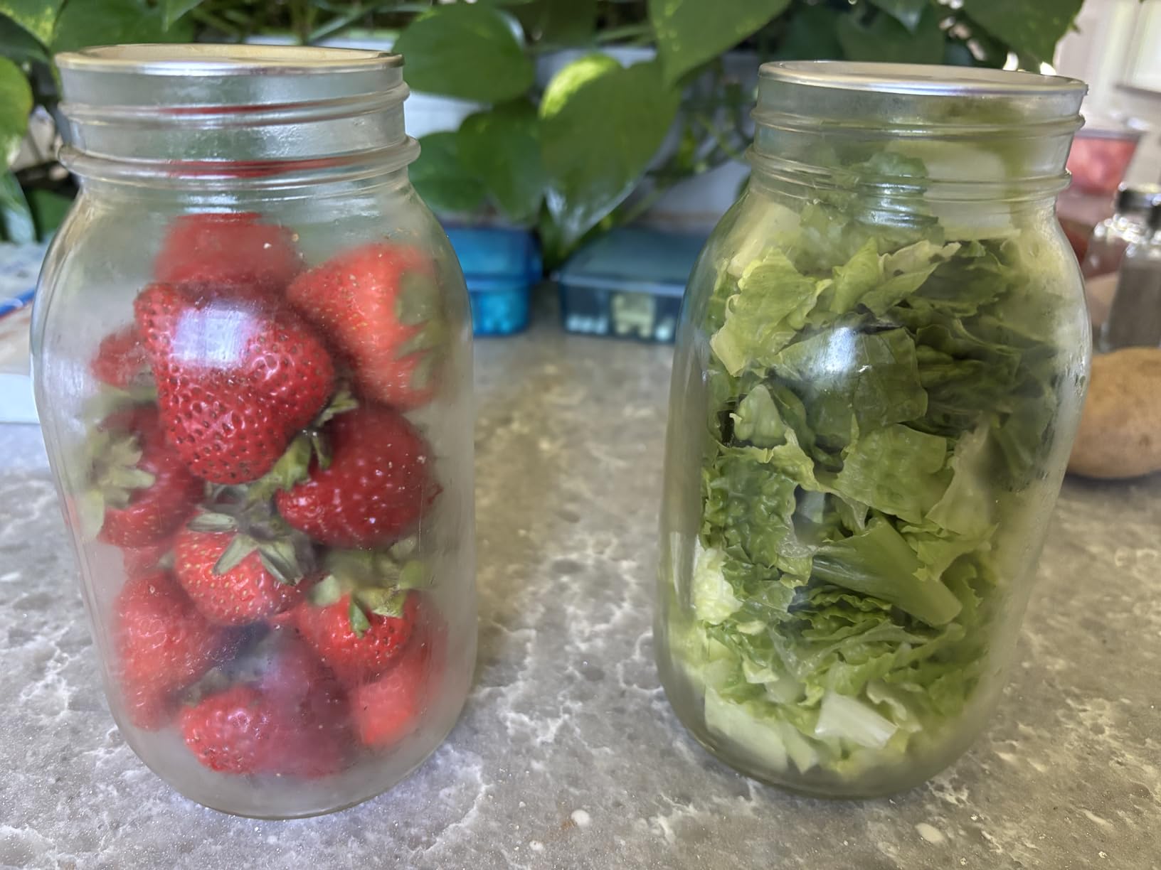 • Rows of neatly sealed jars, each holding fresh, crisp food