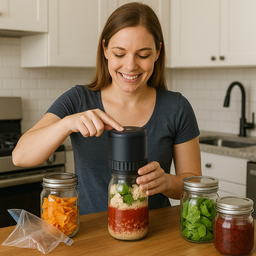 ✔️ Crisp-Lock™ Vacuum Power – pulls up to -60 kPa of pressure to lock in crunch and flavour in your mason jars